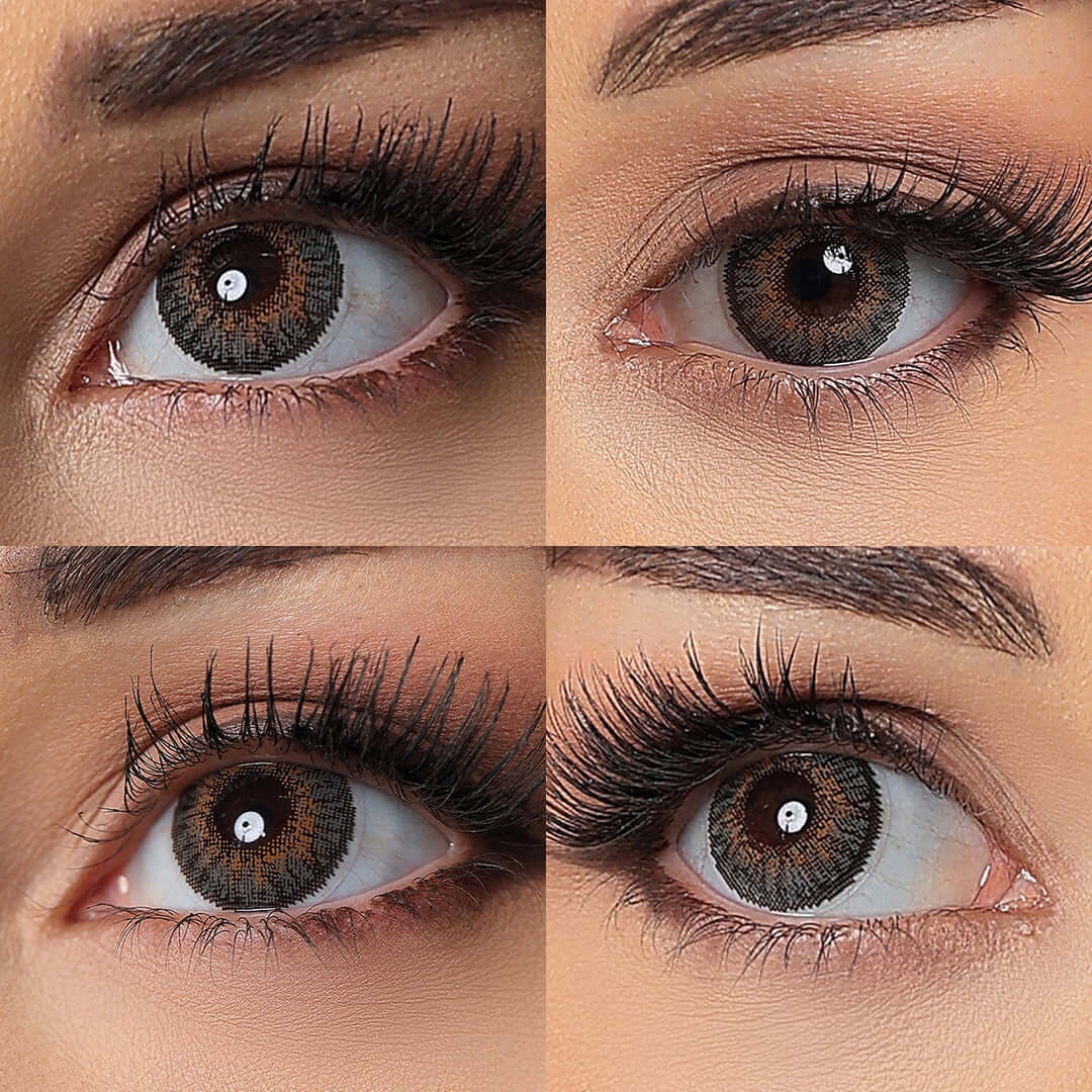Enhance dark eyes with 3 Tone Gray Contacts. These gray brown colored contacts blend soft tones for a realistic, elegant look and all-day comfort. Shop now!