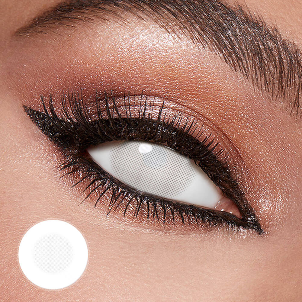 The White Mesh Sclera Contacts are designed to cover your entire eye and make your full eyes appear to be completely white web. It's ideal pure white lenses for Halloween to cosplay a realistic zombie look and an alien-like effect.