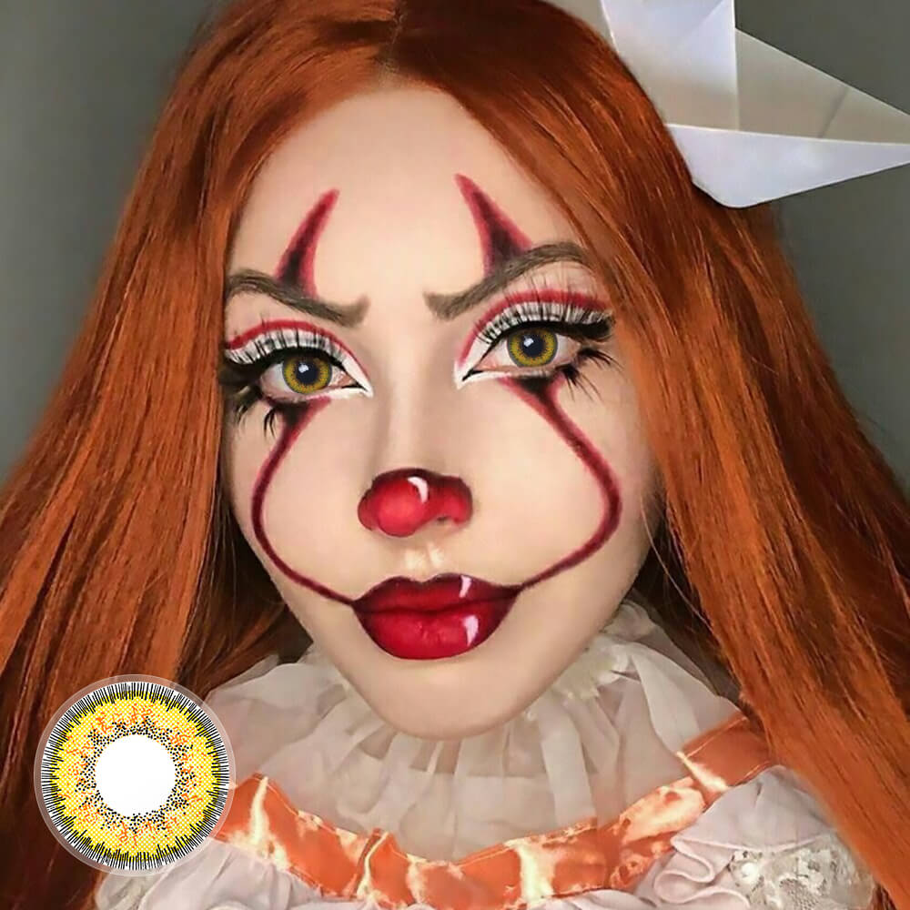 The yellow tri-color colored contact lenses will help you get bright and shiny eyes in your daily work or special activities. Wearing it, You will be very noticeable at the party.