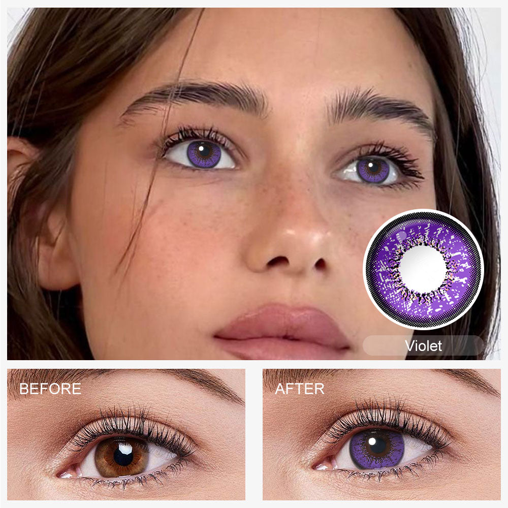 Unleash a dramatic transformation with the Flame Violet Contacts, where the vibrant red contrasts strikingly with a vivid purple background. The bold combination creates a mesmerizing effect, ensuring your eyes are the center of attention.
