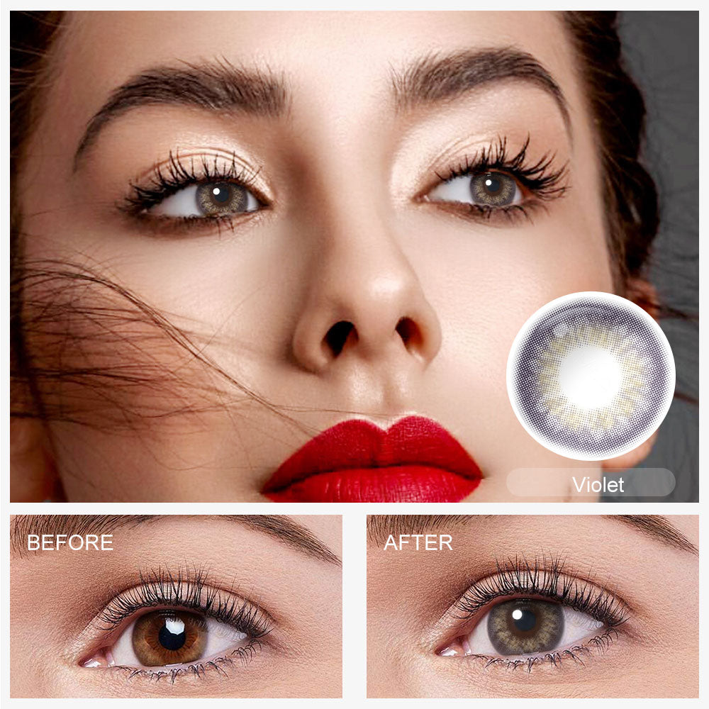 Illuminate your look with Gleam Violet Colored Contact Lenses. These striking lenses feature a vibrant dark violet hue that completely covers your natural eye color, creating a bold and captivating effect.