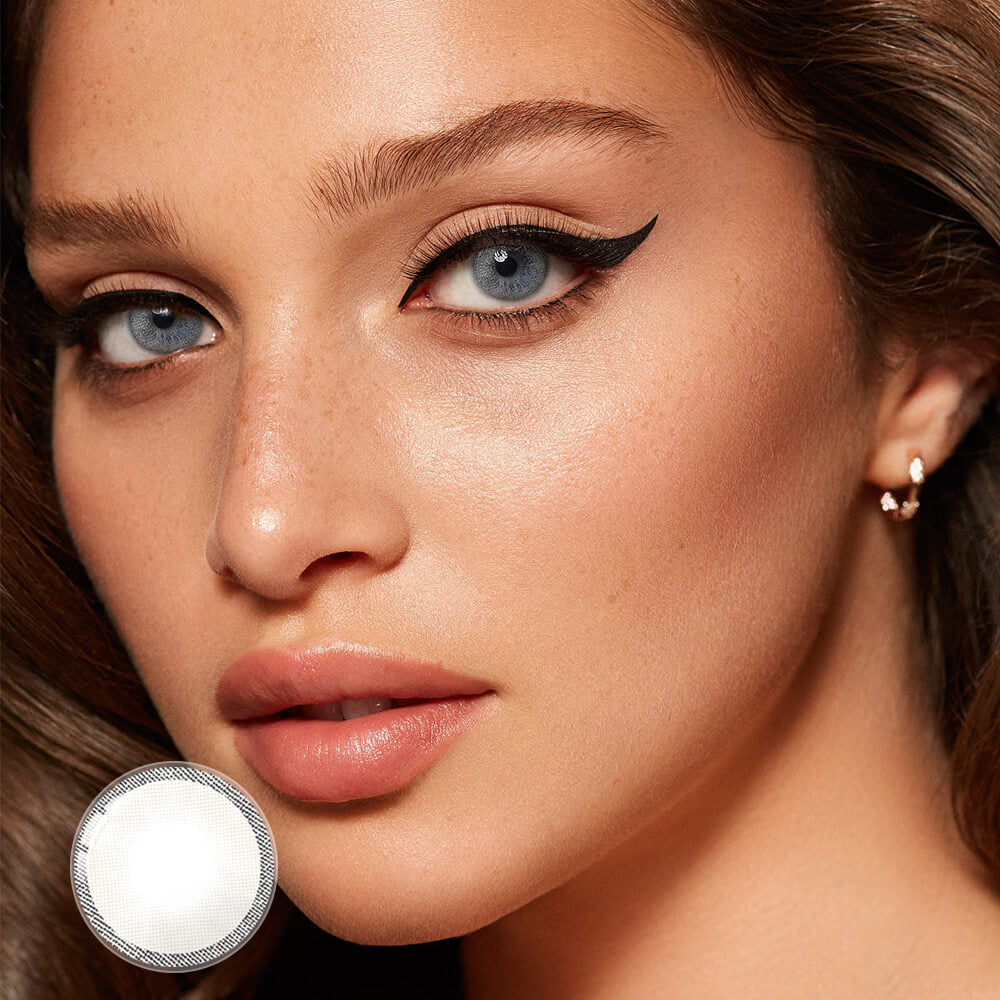 Transform your look with the Hidrocharme Ice Contacts, featuring a brilliant silver that sparkles like ice catching the light. These contacts shift your natural brown eyes to a striking gray, offering a fresh and dazzling new appearance.