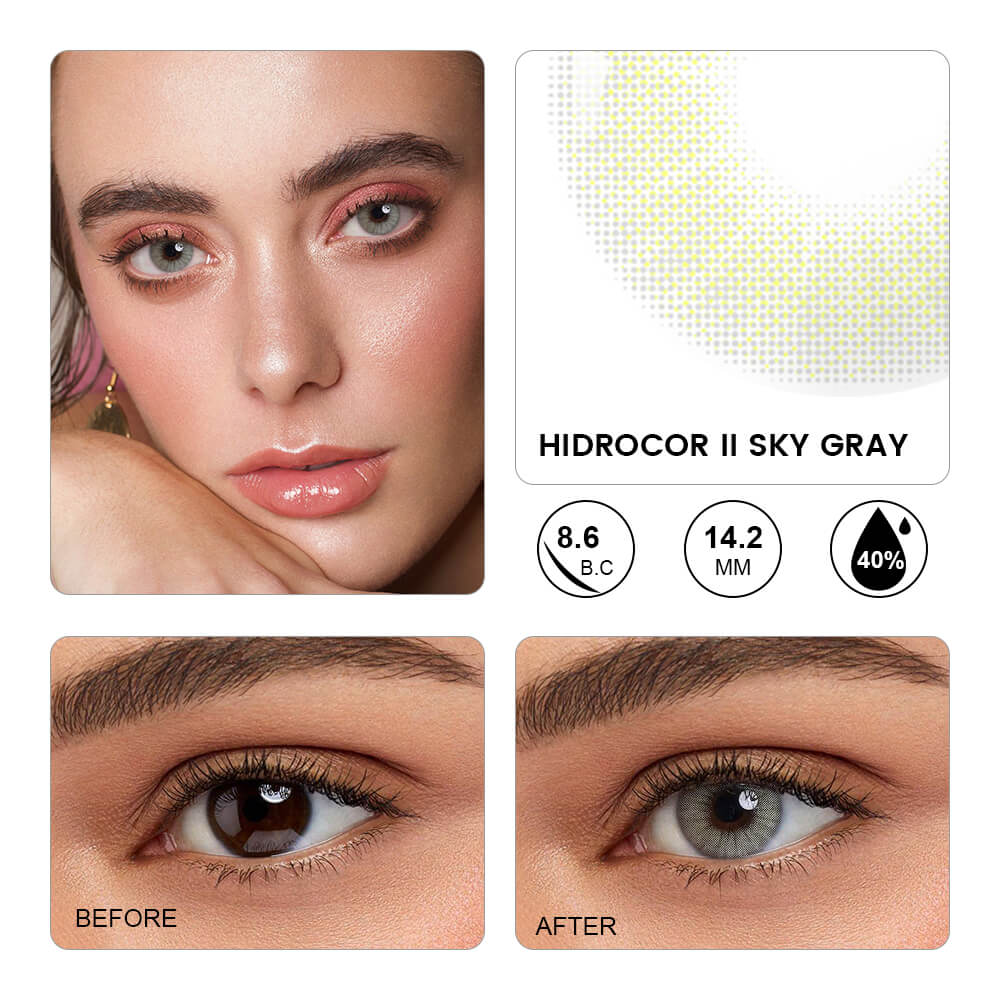 Elevate your eye game with Sky Gray Contacts, designed to blend vibrant color with a natural appearance. The light gray hue transitions seamlessly into a bright yellow, offering a striking yet subtle enhancement.