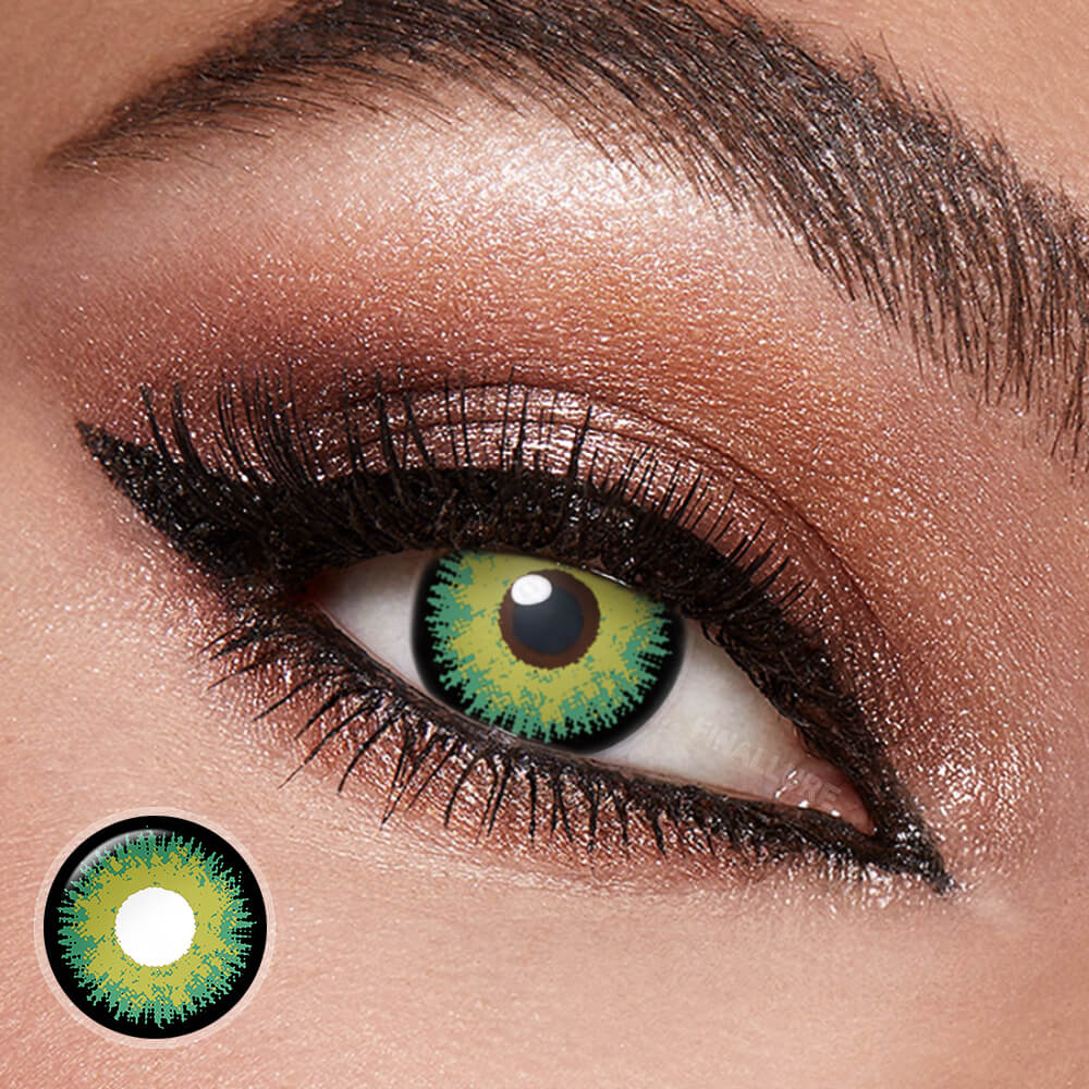 Shop Maleficent Contact Lenses with vivid green design. Perfect Maleficent cosplay contacts for costumes, Halloween looks, and fantasy photoshoots. Safe, reusable, and comfortable.