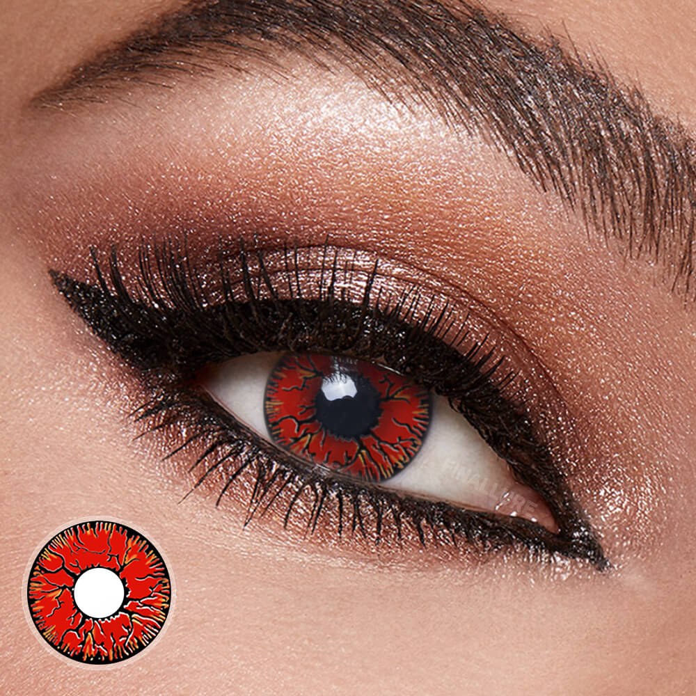 Shop Red Crack Contacts with a bold cracked vein design. Perfect devil and zombie Halloween contacts for cosplay, 12-month use, and fast worldwide shipping.