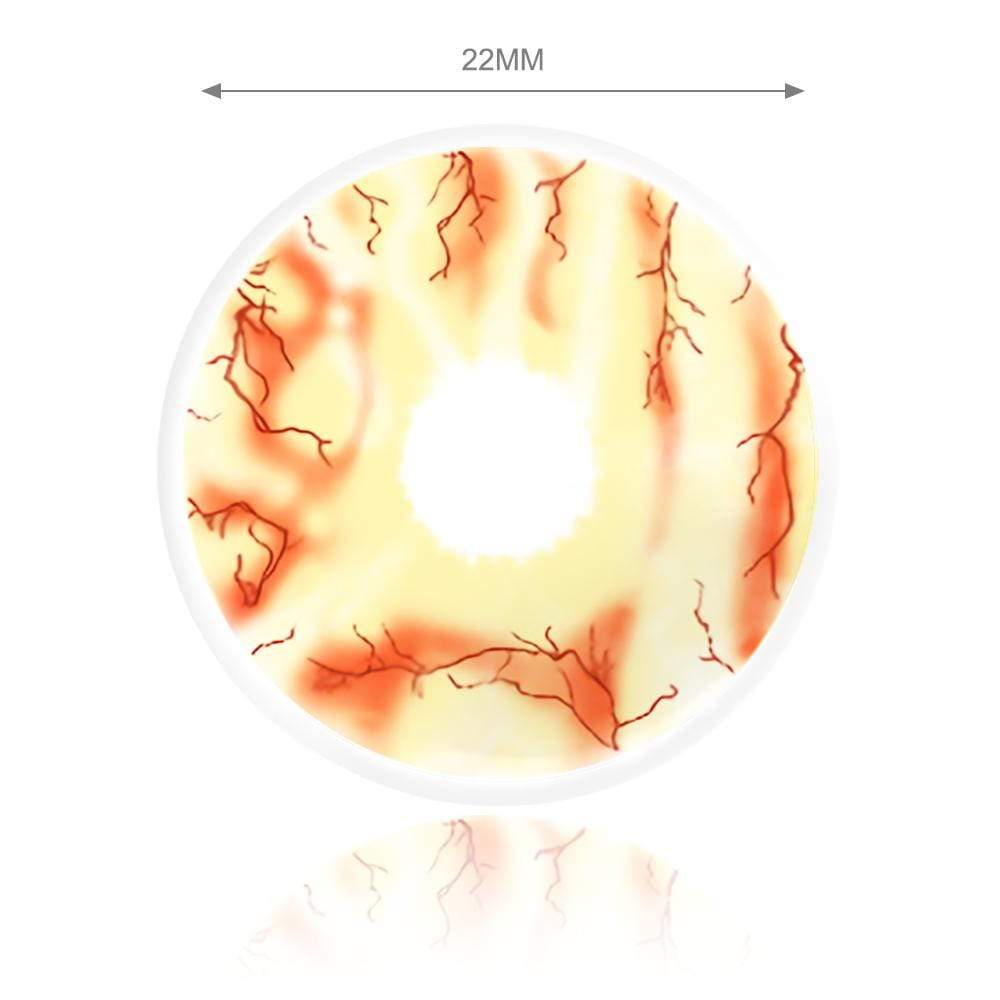 With a warm yellow background and red bloodstain pattern, the Red and Yellow Sclera lenses are your best choice for your demon or zombie costume. The 22mm big diameter pattern could cover your sclera and make your costume spookier.