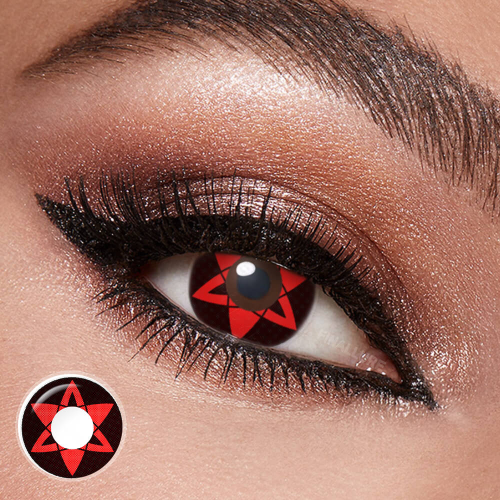 Shop Sasuke Eternal Mangekyou Sharingan Contacts with vivid red swirl design. Perfect Naruto cosplay contact lenses for costumes, photoshoots, and Halloween. Safe, reusable.