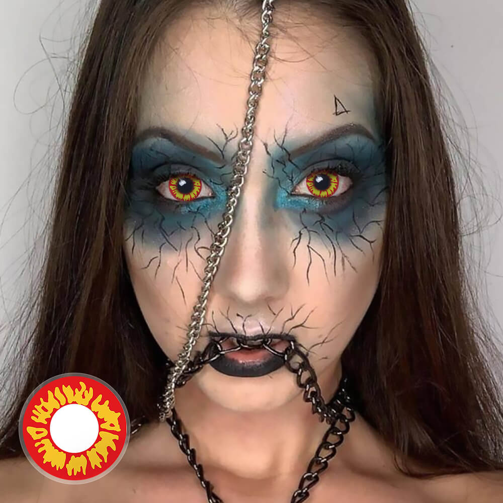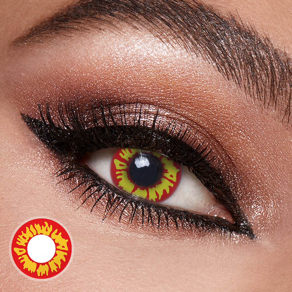 The Wild Fire contact feels very scary. The red outer ring is full of blood and dreadful. The bright yellow is burning like a flame in the middle. Good for Halloween and cosplay.